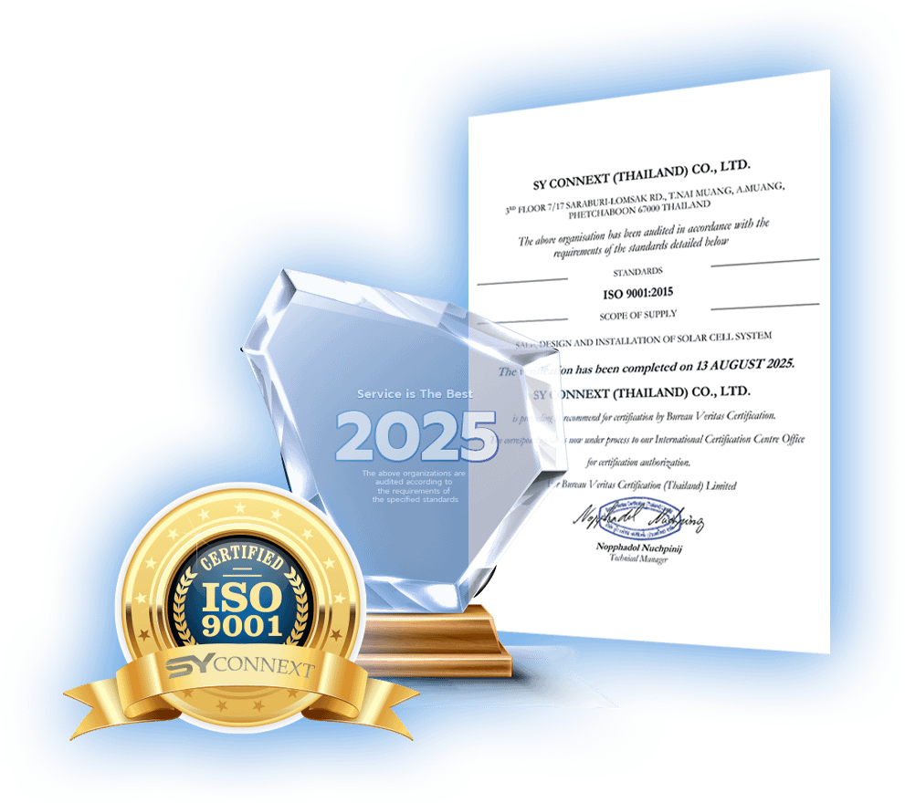ได้รับการรับรองคุณภาพระดับสากล ตั้งแต่ให้คำปรึกษา ออกแบบ จัดหาอุปกรณ์ และติดตั้งระบบโซล่าเซลล์
